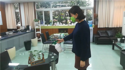 疫情发生以来,管控措施一再升级。早上8点20分,学校北门门卫处,保安队工作人员正在对出入学校的值班人员进行登记,包括进校时间、进校目的、动向信息,同时必须在测量体温后,体温符合正常范围的值班人员才予以入校。“疫情发生后,学校就进行了封闭式管理,就算是本校师生,无特殊情况均不允许进校。”保安队长于海龙介绍:“即使是保安队员原则上亦不允许外出,避免接触人流。因为假期延长,返校拿取物品的学生也一律在校外等候,我们替学生进教室获取后在校门外传递。除此以外,校园内外每日分早、中、晚三次进行消毒,并加强了人员管理和跟踪,多措并举确保校园公共卫生安全。”