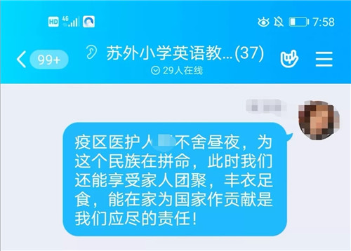 突如其来的新型冠状病毒引发的不仅是疫情,也推动了信息技术在教育教学领域的大规模应用,打破了课堂的边界,苏外师生在探索中前行,以昂扬的教学和学习的激情展现出苏外师生面对疫情的坚决斗志。病毒阻挡得住我们去往学校的步伐,却阻碍不了知识的传递,我们用教育的温度温暖这个特殊的寒冬!