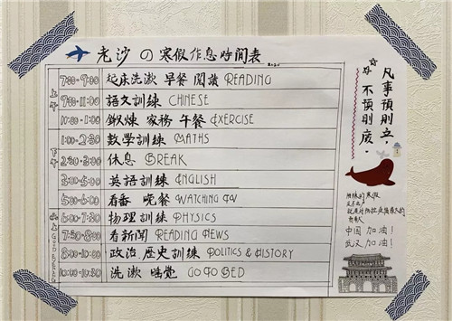 少了走亲访友,没了外出旅游,当许多家长开始头疼何时才能“神兽”回笼时,苏外的家长们除了配合老师填写各项日常统计表外,还给老师发送了一份份这样的寒假作息表:
