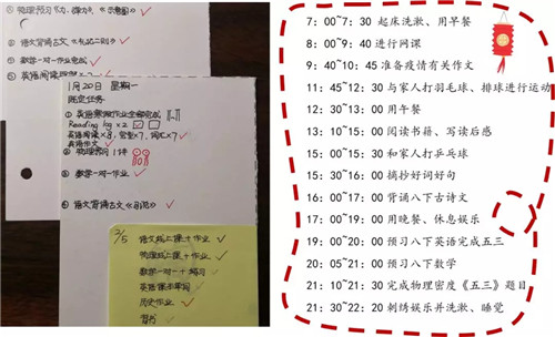 一份份作息表和往年一样:阅读、学习、运动、分担家务,一样都不少;这样的作息表又和往年不一样,少了走亲访友,多了视频拜年;没了外出旅游,更多的是于书海徜徉;没了户外运动,多了居家锻炼;除了自主学习,还有在线学习、防疫知识学习……