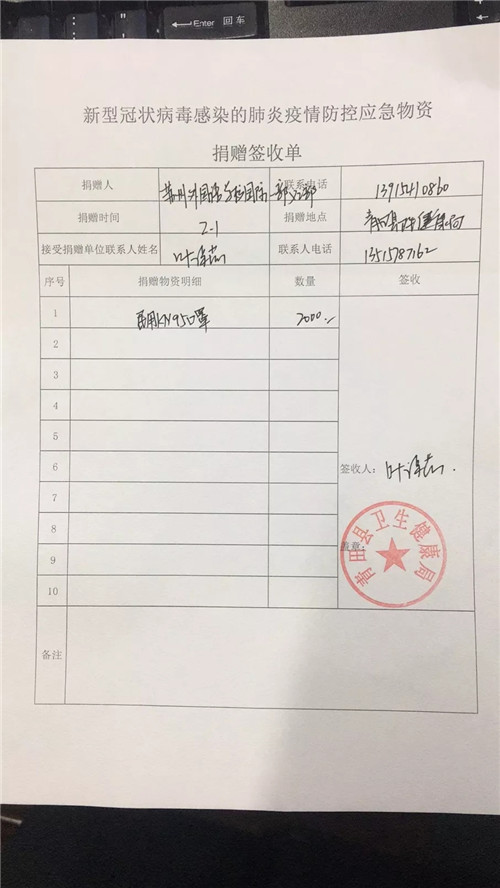 此前,包括1600护目镜、400套防护服、4000双乳胶手套在内的第一批物资已经全部抵达并签收。