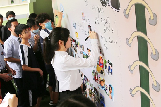 欢声笑语间洋溢着青春的气息,辨认完照片,同学们从照片墙上取下照片,签上自己的姓名,并合影留念,记录这值得纪念的时刻。