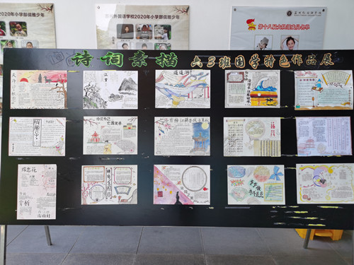 在栀子花开的六月,捧读一本诗书,拾起一段时光,重温一段经典,是多么美妙而惬意的事情!六(3)班的同学利用这个超长的寒假,读唐诗,品宋词,他们对经典诗词深入理解,进而进行了艺术再创作,制成了一张张精美无比的小报在校园内展出,体现了班级丰厚的诗词底蕴。