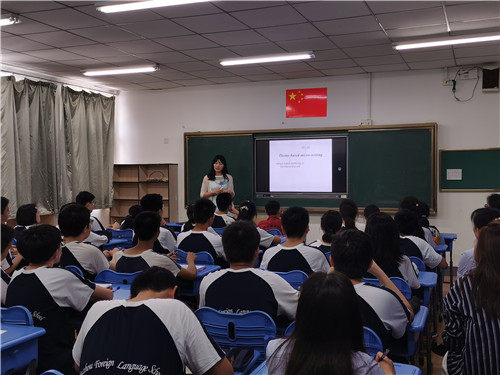 开题仪式之后,跨区域协同发展实践研究课题组成员又进行了基于主题语境的英语写作教学专题研讨活动。苏州新区一中刘晓宇老师就高中英语话题微写作话题进行精彩教学展示,其设置的课堂写作引导任务获得苏州外国语学校高一学生及现场观摩课堂的教师们的一致好评。苏州外国语学校袁菁老师的高三写作指导课带领学生领会高考作文写作要点,组织学生就同伴习作进行互评,有效地促进学生对写作要素的掌握。其课堂体现了以学生为主体,教师辅助学生的生态课堂特征。课后,跨区域协同发展实践研究课题组成员就两节课堂进行了深入的讨论和点评。孟庆忠教授结合新课标的要求,对基于主题语境的写作教学做了简要阐释,并就下一阶段的研修任务进行了部署。