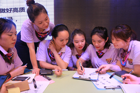 主题讨论环节:老师们纷纷围绕“什么是高质量的陪伴?”、“如何做好高质量的陪伴?”进行圆桌讨论,充分发挥潜能,创造性的绘制出一张张逻辑清晰的思维导图,随后每组代表进行分享交流,其他组员进行补充,提出了自己的独到见解。