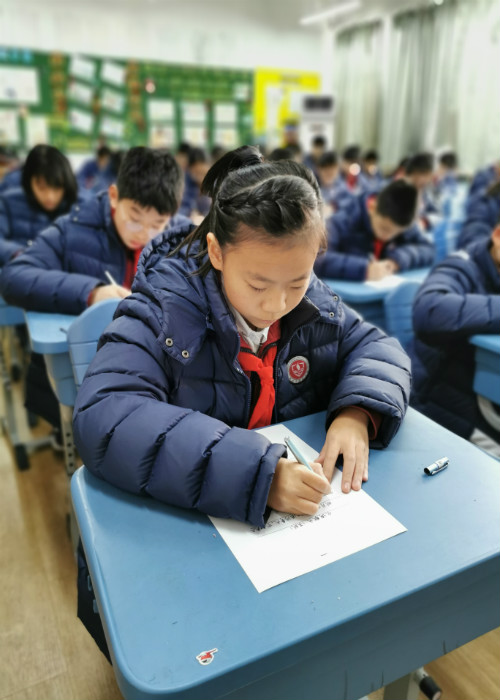 四五年级时,姚老师每周都来班级指导我们学写毛笔书法,加上一至三年级李茂中老师带学生打下的书写基础,我们班一贯以来都以书法为特色班。此次,为了让学生更规范地书写正楷,姚老师再次亲临我班,不仅亲手写下《水调歌头》的范本,还一一讲解了字的由来、变化、故事等,学生们听得津津有味,也实实在在学到了书写正楷的要领,更领略了汉字的艺术之美。