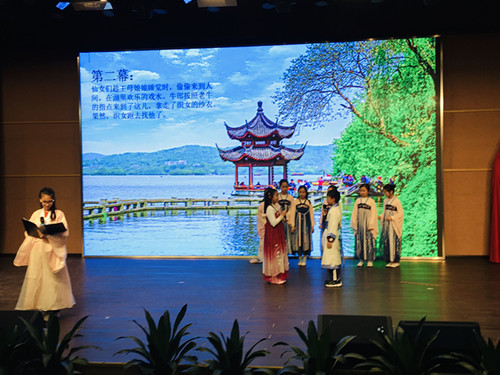国学经典中,有金戈铁马、琴棋书画,有大漠孤烟、水墨江南,还有忠肝义胆、千里婵娟。每周的国学课,同学们整齐流畅、声情并茂地背诵着经典诗词。国学集体背诵环节,同学们整齐流畅、声情并茂,展现了国学经典的音韵美和意境美。抽背一些经典名句的环节,同学们更是跃跃欲试、争先恐后,每个人都想展示自己熟记于心的经典诗歌,没有被抽中的学生还面露遗憾。五6班每个学期都会让孩子们选取国学故事自己改编剧本并分角色进行演出。由原来老师手把手的指导编排,到今年孩子们自行选取故事自行组合自行表演,效果之好让人颇感意外,学生借助实际加深对孟子的理解,将所学与自己的生活联系起来增益人生。12月份我们进行了国学展示活动,激发学生的兴趣。