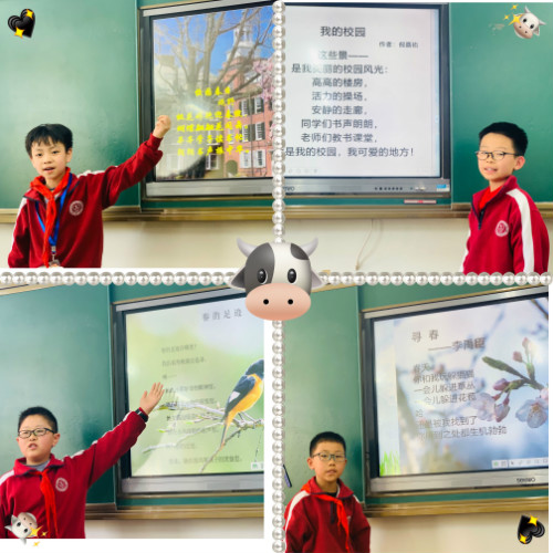 旭阳升,光一寸寸照入眼眸,一切开始鲜活起来。春风起,唤醒惊蛰万物,春光现,晕染姹紫嫣红。在这美好的春日里,我们漫步紫藤长廊、驰骋绿茵球场、徜徉花丛草地,化身小小诗人,抒发出对春的赞美。