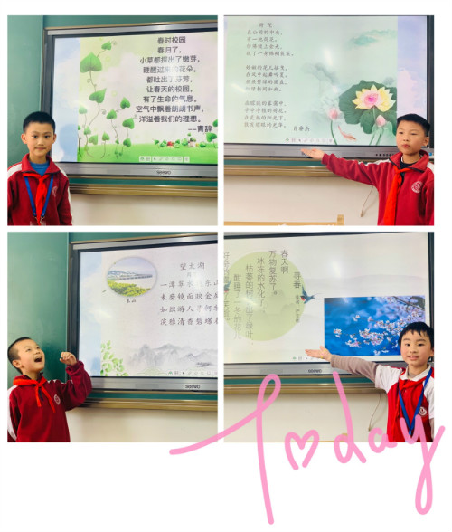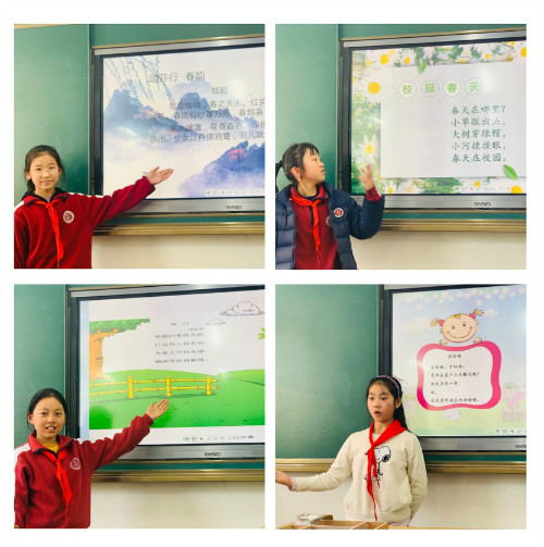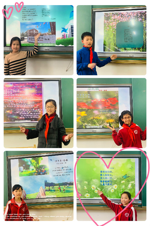 3月26日周五班会课,盼望许久的诗歌诵读会终于拉开了帷幕。一首首赞美春天的小诗呈现在大屏幕上:美丽的背景配上优美的音乐,同学们自由诵读自己的佳作,有的诗温馨可爱,有的诗慷慨激昂,有的诗明朗轻快,还有的诗魅力迷人。同学们欣赏品鉴,时而微笑,时而颔首,时而击掌,陶醉其中。