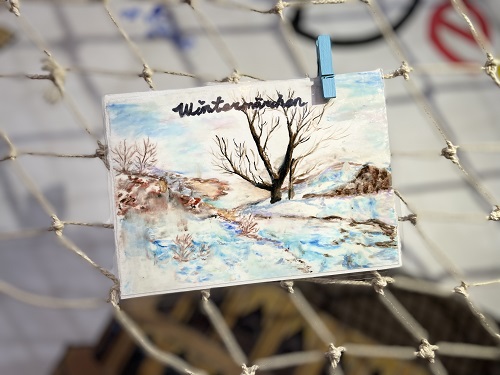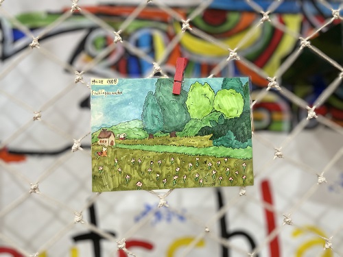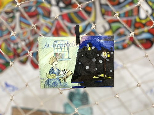今年德语班的暑假作业是根据老师们准备的十个词语来构思心中关于各个词语的美好想象。每人可以选一个最喜欢的词语,用画笔勾勒出词语所能烘托出的情境。