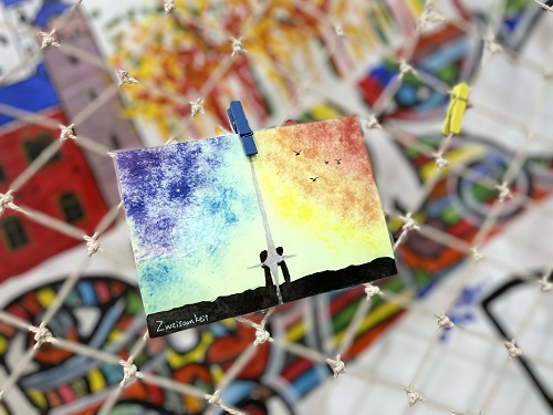 学生们将自己的感受通过画笔完美的呈现了出来,为五彩斑斓的多语种走廊又增添了一份明亮的色彩。
