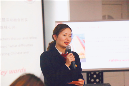 在苏外幼儿园里,中外教共同教研已经形成常态。融合的过程也是包容与兼容的过程。周瑶校长助理发表了重要的讲话。她从为什么要融合谈到了三点“需要”:即教育改革的需要,幼儿成长的需要,苏外发展的需要。从国家宏观背景到全球发展变化,从教育的本质谈到本土化国际幼儿园的建设。期望通过中西融合的教育让孩子们和谐健康的成长。其次,周校助分别从中外教形同左右手的关系、教材与课程的关系、幼儿的绿色发展评估三方面和大家分享了怎样来融合。