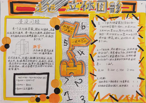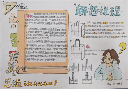 所以,我们年级数学组鼓励同学们利用课后时间,开动脑筋,动手实践,用小报的形式展示了自己的解题思路。