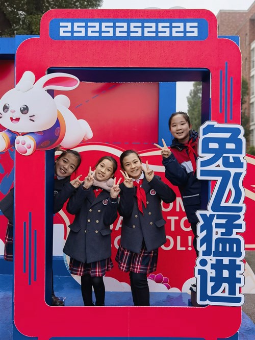 开学典礼上,举行了庄严肃穆的升旗仪式;杜校长的讲话振奋人心;四牛津三剑桥,学长学姐给予的新动力新希望;开学第一天,我们收获的是满满的爱,满满的期望与希冀,我们四2班的孩子也将会在新的起点,不忘初心,扬帆起航,向着梦想砥砺前行,创造属于我们自己的一次次超越和惊喜。愿四2班的孩子们在新的一年里——以梦为马,不负韶华,大展宏“兔”!