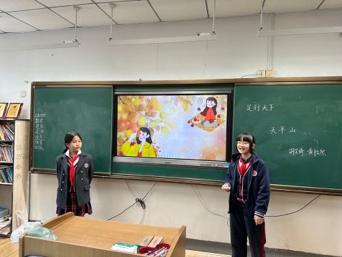 本学期第一个来分享的是黄怡然和胡芷绮同学。其实上学期末,她们俩就进行了准备,但是因为疫情,就耽误了!黄同学和胡同学今天介绍的是天平山。主要分这几个板块来介绍的,分别是:介绍天平山、天平山的风景、介绍范仲淹和他的故事以及天平山特色小吃和剪纸。一开始,她们用一个视频,让大家对天平山有了一个非常初步的全面的印象。在介绍天平山风景的时候,重点介绍了山上的树叶树种。对范仲淹的介绍非常详细,从他的生平、诗句、成就等方面展开,还补充了两个小故事,大家听得津津有味。最后一部分的介绍中,重点分享了一位名叫王晓的工艺大师的剪纸作品,精致大气,让人惊叹!两个同学一起来分享的方式很新颖,两位孩子的准备都很充分,据说她们是在各自家里用QQ共享屏幕来进行练习的,孩子们的主观能动性真是让人欣喜!