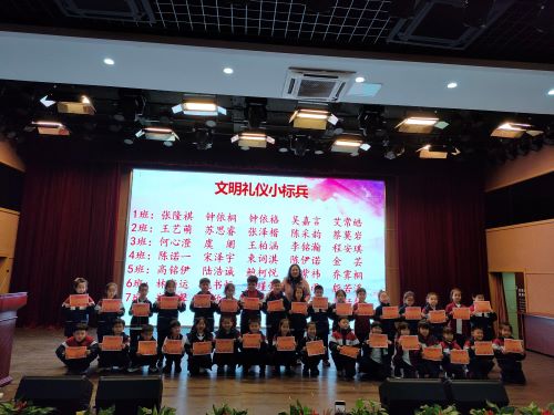 活动最后,杨老师带领所有同学进行宣誓,立志争做苏外文明小标兵。并对前期在文明礼仪方面做得非常好的同学进行表扬,颁发奖状。孩子们个个精神昂扬,对自己今后如果做一个文明儒雅的苏外学生心中有了尺码,有了分寸。
