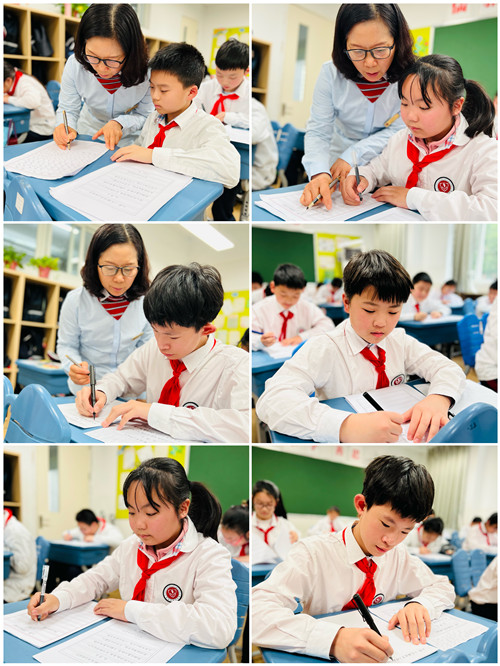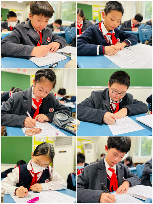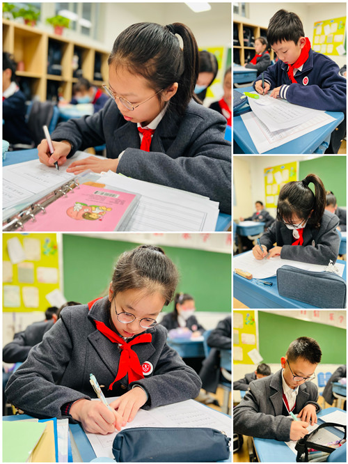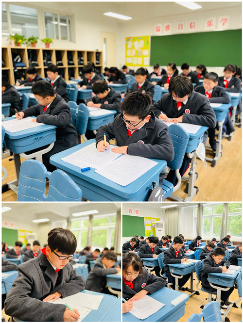 二班的语文李珍亚老师是一位自身书法优秀、教学经验丰富的资深教师,曾执导学生多次在市、区书法大赛中斩获佳绩。四年级时,李老师刚刚执教二班语文,仅仅一年后,孩子们就获得了高新区整班钢笔字比赛二等奖的好成绩。每一周的班级练字时间,李老师尽心指导,小到一笔一划,大到每个字的间架结构,李老师带领同学们仔细斟酌,反复推敲。横竖撇捺、起笔收笔,同学都认真书写,全神贯注地投入其中,感悟汉字的美妙,感悟书法的精深。