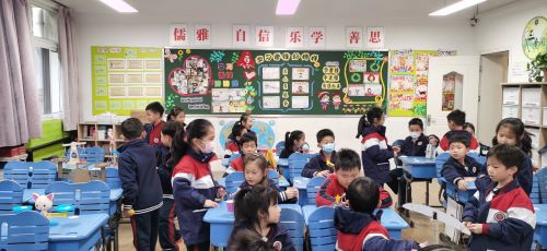 获奖作品选出推荐到全年级展示,其中有两位制作者还身披绶带,给前来观看的同学进行解说,说出自己制作的经过。