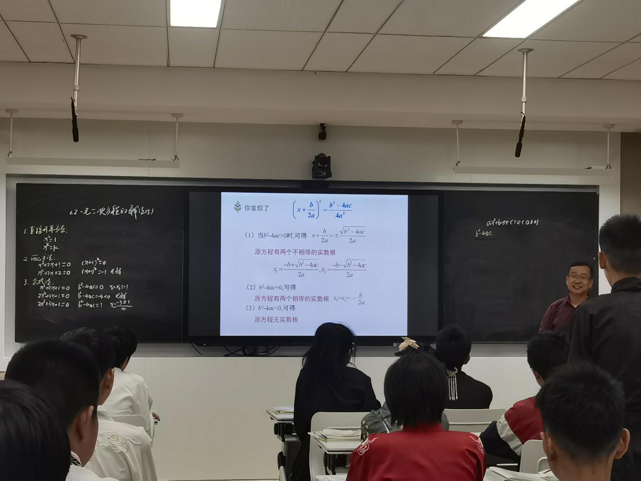 4月20日下午,初中数学组以数学单元结构教学的模式探究为主题,开展课题进课堂教学研讨活动。初二备课组何蕾、柳志斌两位老师分别就该主题开设同课异构公开课《1.2一元二次方程的解法(5)》。