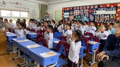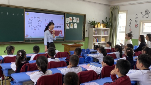 多语种和其他课程是一样的授课方式吗? 带着这些疑问,今天就让我们一起在王帅老师的日语课堂上找到答案吧! 课堂一开始,王老师让同学们都站起来,跟着多媒体中的视频,听着音乐,一起来一段轻松的舞蹈,熟悉本节课将要学习的单词。王老师精心的教学设计富有创意,循循善诱。孩子们在轻松愉悦的氛围中学到了知识,收获了能力。家长们看着孩子们主动、愉快地学习,露出了会心的微笑。老师们充满个性的教学风格,富有灵性的教育智慧,更让家长们感受到课堂的魅力。