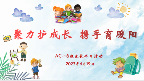 美丽四月,我们迎来家长半日活动。分享交流,共同收获幸福的新知;家校共育,一起守望孩子们的成长。AC一6班的家长半日活动以“聚力护成长、携手育暖阳”为主题,以“感谢、幸运、尊重”为关键词顺利开展。