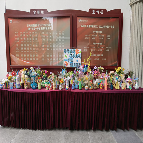 只需要发挥一些小小的创意,就可以让废旧的物件摇身一变,成为一件精致的装饰。为了培养学生动手、动脑能力和创新精神,丰富学生的课外生活,提高学生爱护环境,珍惜资源,合理利用资源,变废为宝的环保意识,苏州外国语学校小学四年级组举行“创意花瓶比赛”活动。在轻松的创作过程中培养了创新、创造精神,每个作品饱含着大家的创造力和想象力。活动不仅培养了同学们的绿色环保观念,还丰富了同学们的精神生活。