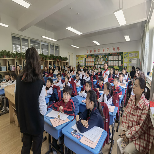 袁桅桅老师执教的是英语课,课堂将英语课文与生活相结合,学生们表现积极,深入思考, 家长们认真聆听,跟着孩子们一起思考,呈现出一节集知识与思维相结合的多元课堂,大容量课堂。