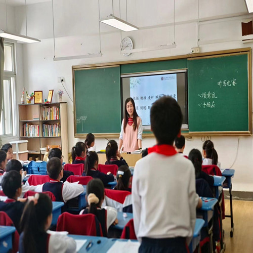 丁芸老师执教的《一次 的听写比赛》作文课。课堂上,丁老师趣味横生,循序渐进地带领学生们勇于表达、掌握心理描写的方法。整个教学过程,不仅学生们听得认真,讨论热烈,就连坐在教室后面听课的家长们也听得全神贯注,不时与身边的人研究一下,表现出强烈的兴趣。