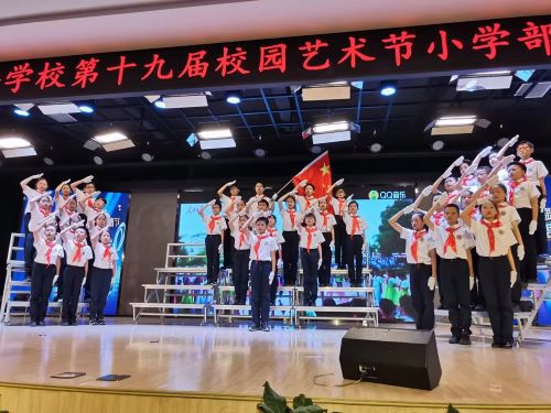 在学校第十九届校园艺术节小学部合唱比赛中,四(3)班的孩子用嘹亮的歌声,唱出少年的志向;用坚定的眼神,诉说奋进的决心——我们既肩负沉甸甸的时代重担,我们又憧憬美好的未来!
