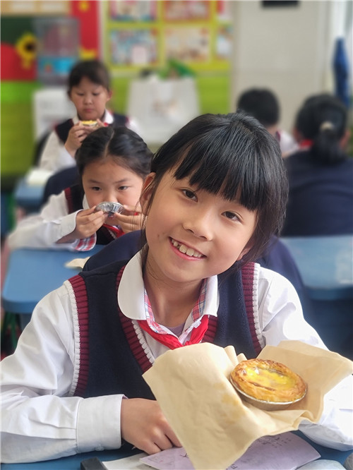 二(1)班的英语老师是个超级奶爸,经常会 “投喂”我们。瞧,之前刚给我们体验了柠檬水的清爽,上到有关烘焙的课文,又开始烤蛋挞了!……哎,蛋挞这么香这么好吃,可让我们怎么办才好?——吃就对了!这么帅气的奶爸英语老师,你也想要来一打吗?