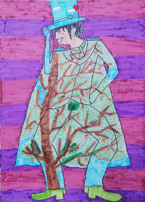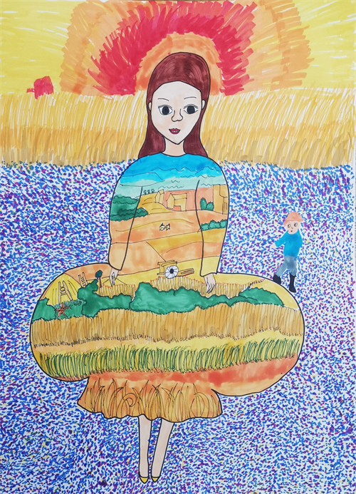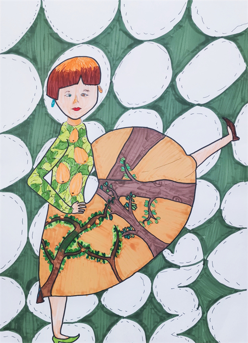 这学期,右脑艺术实验绘画兴趣组的同学们欣赏学习了新锐服装时尚设计师们的服装设计和T台秀,了解到服饰也可以用多种材料或者大自然的元素来置换。学生也看到了插画师把时尚人物插画中的服装轮廓保留,里面的图案变成了各种植物花卉等创作形式。通过这些创意形式的分享,孩子们也开始了自己的创作。以此为契机,同学们从时尚杂志中提取感兴趣的模特摄影形象,进行重新构图和改编,保留了模特的身体造型和衣服的轮廓,服饰图案置换成了各种各样美丽的自然风景元素,画面焕然一新,充满了生气。