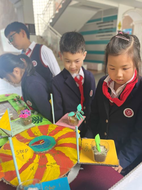 近日,AC三2班的孩子们在外教Mr. Eric的课堂上学习了PLANT LIFE CYCLE相关知识,他们了解了大自然的事物可以分为living things和non-living things,也了解了植物生长的必要条件。孩子们对大自然里各色各样的植物产生了浓厚的兴趣,并开始探索他们的共性:植物生长的6个步骤。在收集资料和听老师讲解的过程中,孩子们感受了自然的奇妙,体会了生命的伟大。渐渐地,他们萌发了制作一个植物生命循环手工,向全校师生展示他们对植物生命循环的理解并想通过这样的形式呼吁大家对植物常有敬畏之心。