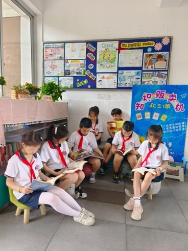 营造一个良好的阅读氛围,给孩子提供一个温馨的阅读场所,我在班级设立了“悦书房”,图书架摆满各类经典图书,保证每个孩子都能在课余时间随时取阅图书。我还在班级之外的公共区域打造了一个舒适温馨的“阳光书房”,摆上各种小椅子,让孩子在闲暇时选择自己喜欢的方式,自由恣意享受阅读的美好时光。阳光下,手捧一本好书,尽情徜徉书的世界,让书香充盈班级内外,让孩子在潜移默化中得到书香熏陶。