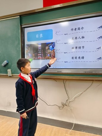 “经典作品讲坛”延续一个学期,每周利用班会课时间,30个孩子分享了30部经典作品:《西游记》《水浒传》《山海经》《柳林风声》《苹果树上外婆》《尼尔斯骑鹅旅行记》《夏洛的网》《神奇点心店》……孩子们分享自己的阅读心得,掀起一股股经典阅读的热潮。