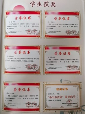 在书法报主办的 “华夏万卷杯”第六届全国硬笔书法大赛中,顾心语、董诗彤获得全国一等奖,杨骁、柳安泽同学获得三等奖。