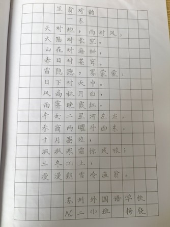 AC三1班参加高新区整班铅笔字比赛获得区二等奖。