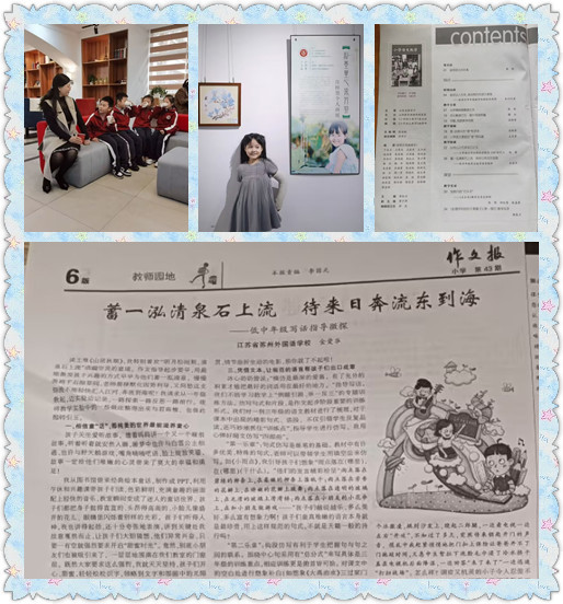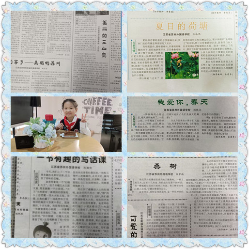 谁说作文起步要到三年级?我近十年来一直致力于作文指导策略的研究,(《蓄一泓清泉石上流 待来日奔流东到海》——低年级作文起步初探 发表于《小学语文教师》和《作文报》)从一年级入学起就和各科老师以及家委会成员一起,挖掘主题实践体验活动的各类资源,孩子、家长和老师们在丰富多彩的活动中体验生活、提升综合实践运用的能力,感受童年的多姿多彩。比如:创意科技节系列活动、吴文化之中医药参观、吴文化之水八仙、吴文化之精美苏绣、我与碧螺有个春之约、牛奶的奇妙之旅、苏州电视台参观等等,还有苏外的四大节活动,比如:创意帽子日、角色体验服装日、复活节谁是彩蛋王、语文课本剧表演、中华故事会等活动,孩子们都很喜欢,纷纷用拼音、画图、不断积累的汉字在我们专用的《读写绘》小本子上我手写我心,记录我们自己身边的精彩生活和美妙体验。学校的桑树、樱花林,体锻课抓到的天牛,有趣的写话课,姑苏秋天的韵味、春天的迷人、夏夜的荷塘˙˙˙˙˙˙和孩子们一起携手度过的温馨的时光、看到的美好景物、我们一起体验过的活动都成为孩子们的写作的上好素材,一篇篇佳作获奖、发表是我们三(3)班孩子最隆重、最兴奋的盛大庆典!