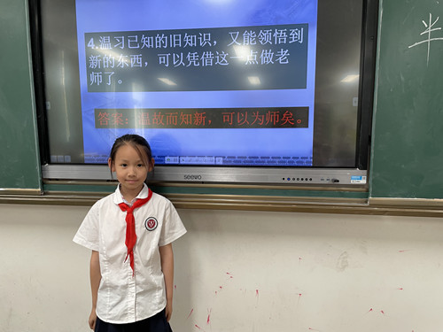 俗话说“半部论语治天下”,在一个学期的《论语》学习中,同学们领略了先贤的智慧,学习了圣人的精神,同学们会背诵默写一些《论语》的经典名句的诵读。