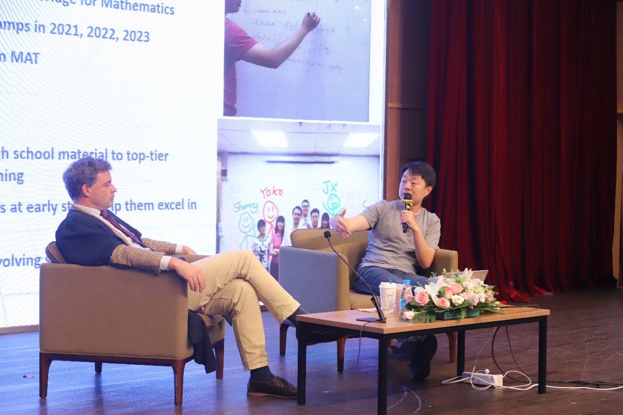 讲座开始,副校长陈黎老师介绍了本次大讲堂的嘉宾:Dr. Essex和Dr. 夏千里。夏博士曾作为Dr. Essex的学生在剑桥大学学习。二位博士也进行了自我介绍。 整个讲座过程中,Dr. Essex和Dr. 夏千里着重讲述了剑桥大学对目标学生的期望和要求,例如擅长表达等,为同学们指出了一条提升自我的光明道路。同时,他们还多次解答了苏外学子对升学道路的种种疑惑,鼓励同学们多多钻研自己感兴趣的专业,参加竞赛、活动,培养兴趣爱好,夯实能力基础。 两位博士从容自信的身姿、侃侃而谈的口才,幽默风趣的演讲风格、学术风格满满的着装,无一不彰显着顶级人才的人格魅力,令同学们纷纷向往不已。同学们在台下全神贯注地听着,沉浸在现场令人激动的氛围中。