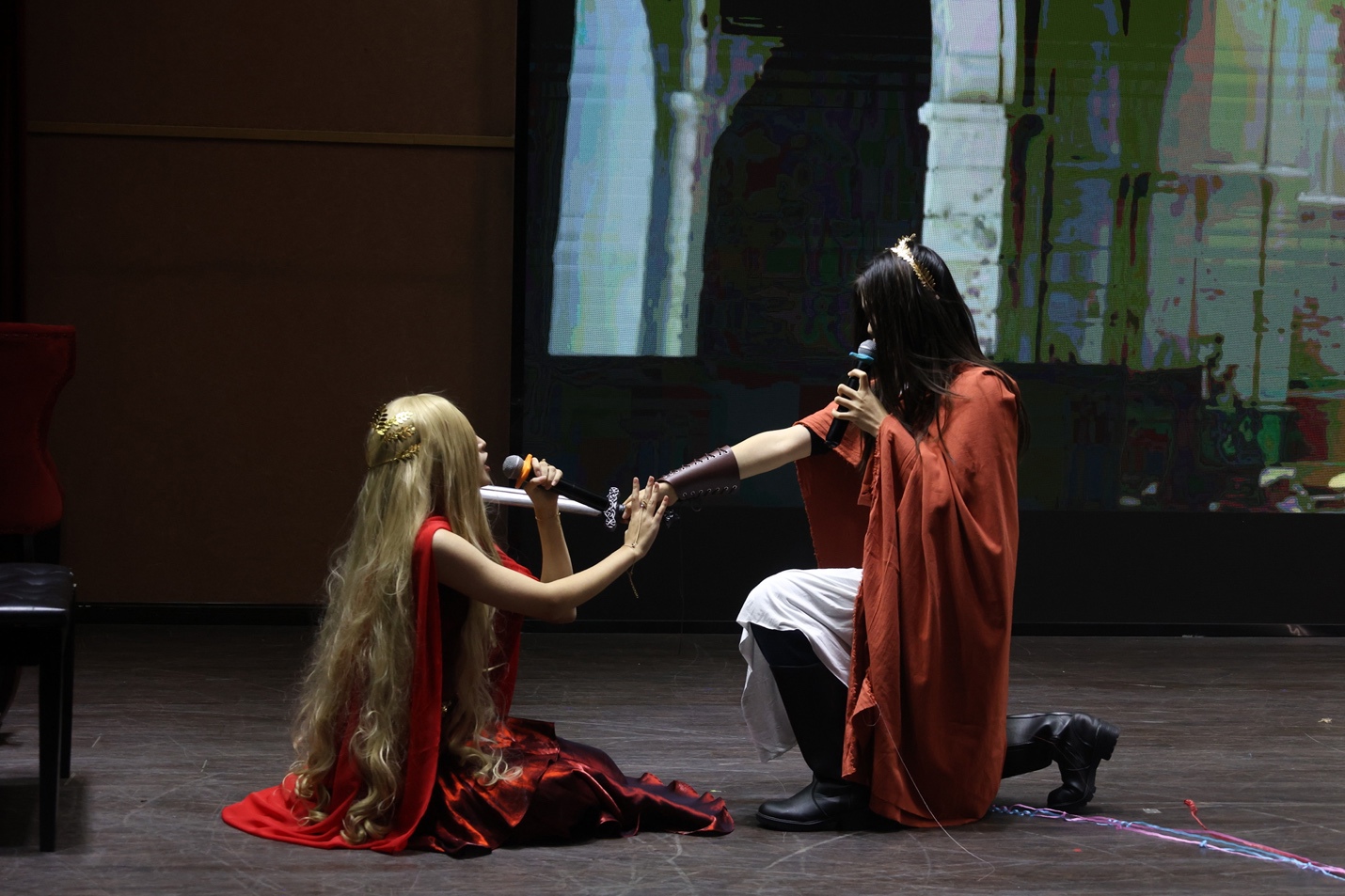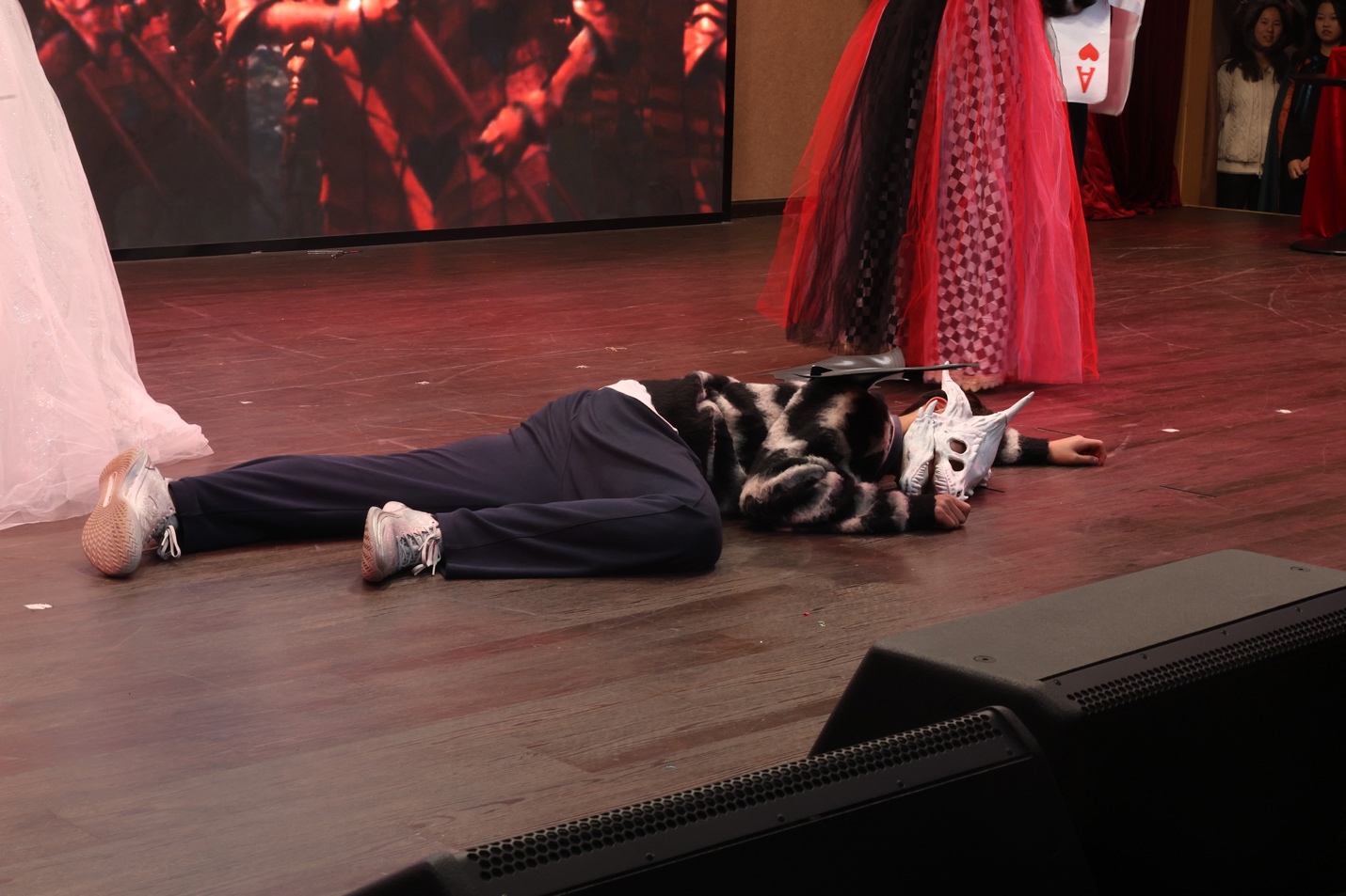 在紧张刺激的计分途中,高中国际部戏剧社的同学也为我们带了他们精心准备的小短剧竞猜游戏,并先后演出了《悲惨世界》、《威尼斯商人》与《甄嬛传》改编而来的英语短剧片段,再一次点燃了现场的氛围。