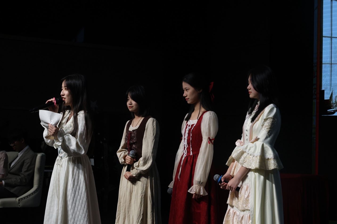 为我们带来查尔斯·狄更斯经典作品的是国际高一2班的同学,我们跟随吝啬的埃比尼泽·斯克鲁奇,在圣诞节精神的指引下,穿越他的过去、现在和未来。这个关于救赎和同情的感人故事提醒我们这个节日的真正精神。当雪花飘落,颂歌响起时,让斯克罗吉非凡变化的故事,让《圣诞颂歌》温暖观众的心。
