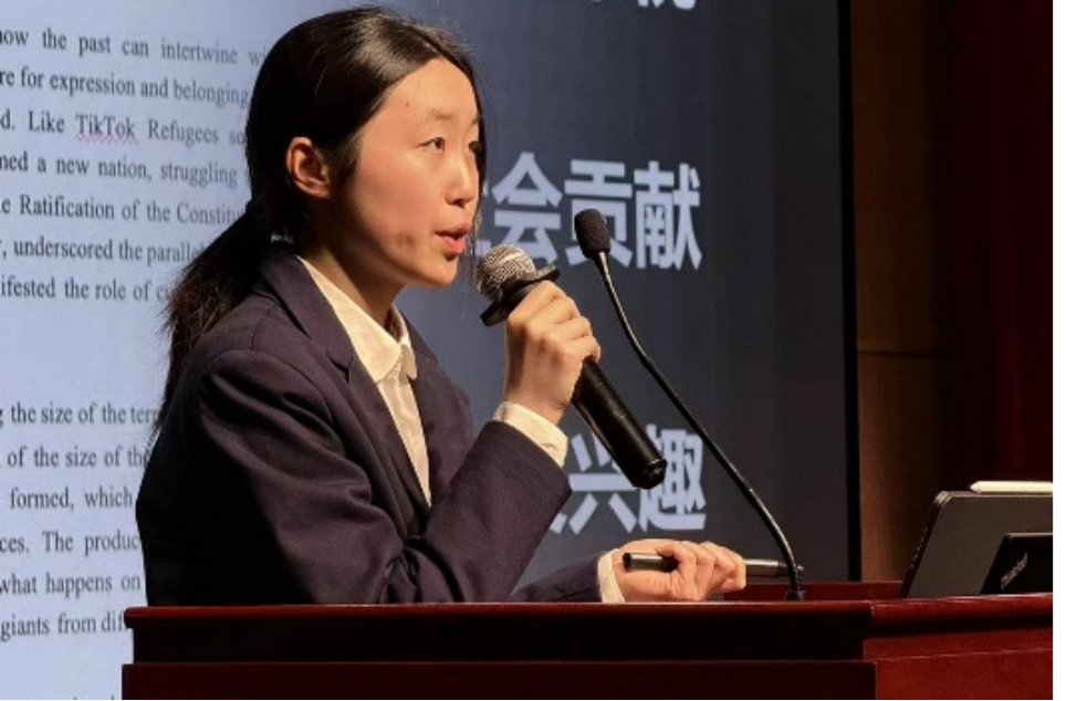 刘清元与陆雨绮两位同学虽然共同选择分享剑桥冬校之旅,却演绎出不同的思考维度。刘清元以《从南宁到苏外到剑桥》为题,讲述成长过程中的心路历程;陆雨绮则聚焦活动本身,反思冬校过程中的得与失。“真正的学术勇气,是敢于在陌生领域提出‘笨问题’”,她的话引发共鸣。