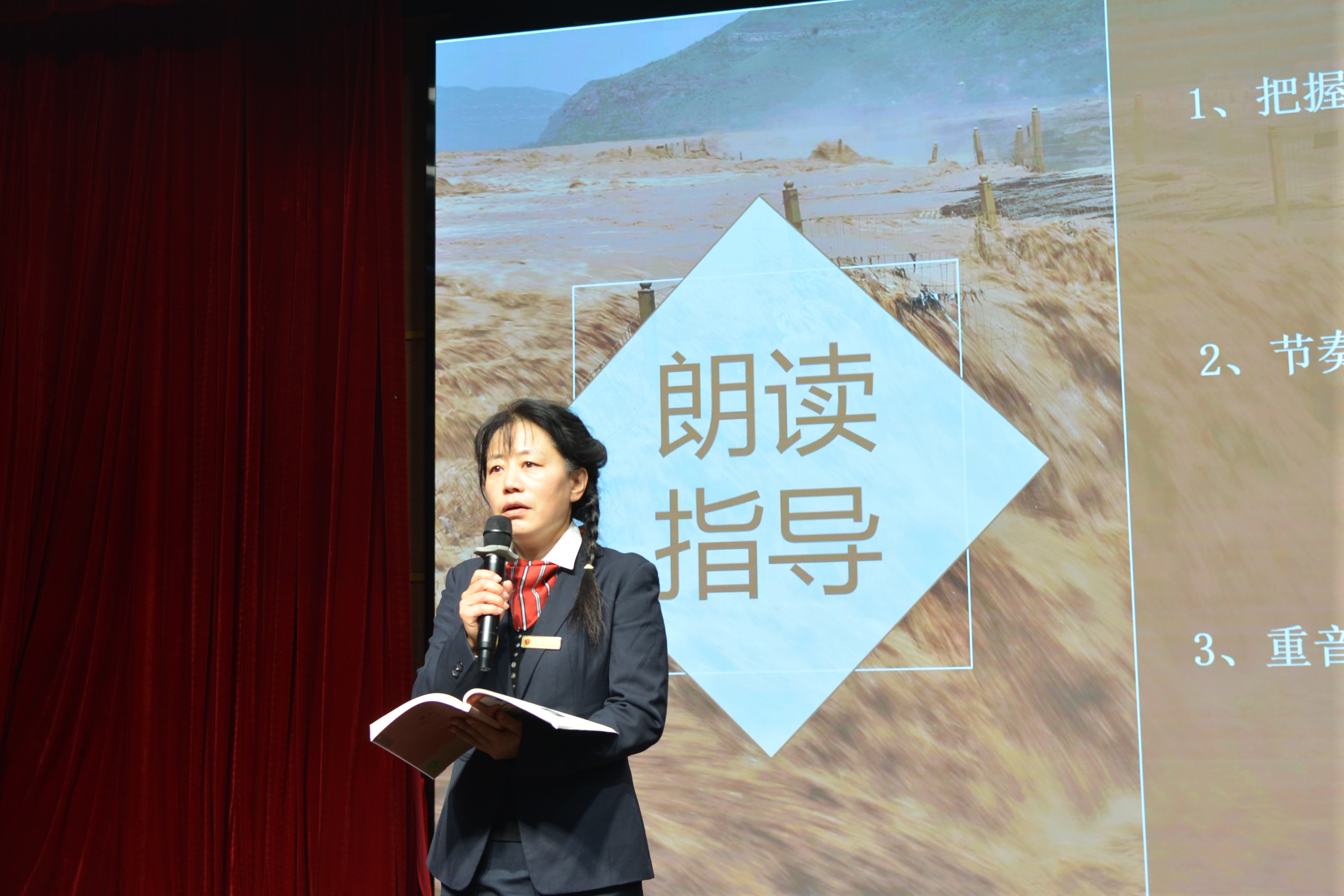 在热烈的氛围中彭蕊老师开启了对《黄河颂》的解读与朗读技巧指导。从重音的把握到语调的起伏,从情感的酝酿到节奏的控制,让同学们对朗诵有了更深刻的理解。为了让同学们更直观地感受朗诵的魅力,袁琳、秦叶、胡明瑶、褚静怡老师依次进行了示范朗读。她们富有感染力的声音在报告厅内回荡。有了老师的示范,同学们跃跃欲试,初一学子们踊跃上台,有的同学声音洪亮,用饱满的激情展现黄河一泻千里的磅礴气势;有的同学语调抑扬顿挫,细腻地传达出诗歌中对黄河深深的崇敬与赞美之情。台下的同学们认真聆听,不时爆发出热烈的掌声和欢呼声,每一次朗读都像是一次与黄河精神的深度对话。