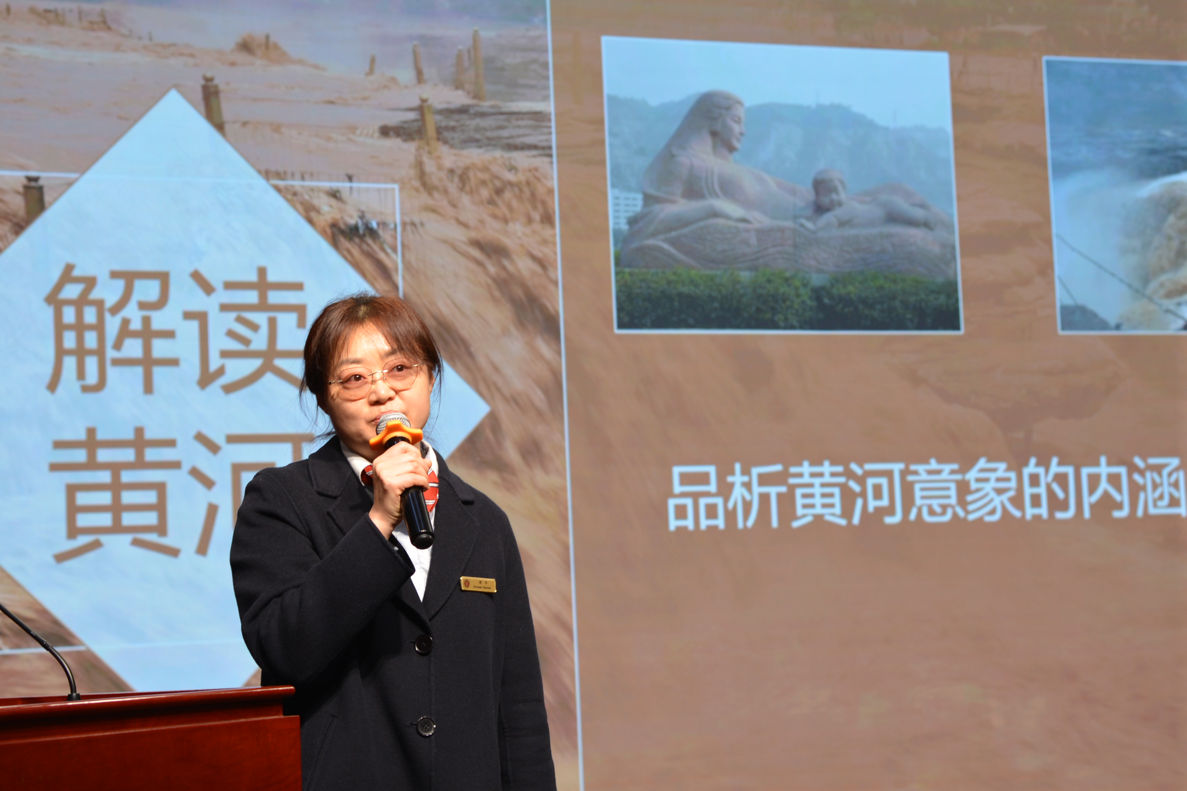 课程伊始,气势磅礴的《黄河颂》配乐裹挟着全体同学充满力量的朗读,瞬间将同学们带入黄河奔腾不息的情境中。雄浑的曲调、震撼人心的节奏,让大家真切感受到黄河作为中华民族母亲河的雄伟气魄。