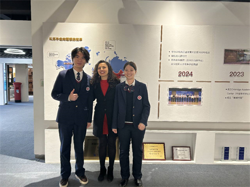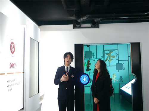 在国际高中西语班学生讲解员的引领下,参赞女士一行走进苏外校史馆。学生以流利的西语讲解,生动展现了苏外的发展历程、办学成就与文化底蕴,赢得嘉宾频频赞许。